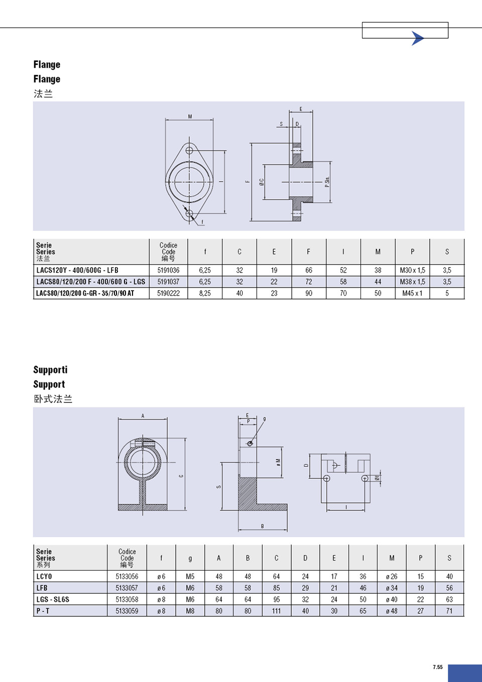 LCYO LFB LGS SLGS P T LFF LGG LACS 等系列马达的法兰、支架连接方式:螺丝拉紧法兰,法兰夹持住马达,