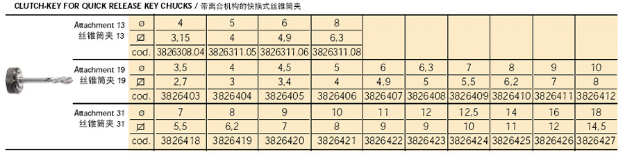 此系列产品也可以选配快换式丝锥筒夹ST19或ST31(带离合或不带离合),或通用型丝锥夹头,或简易快换型丝锥筒夹. |