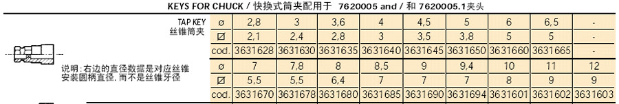 此系列产品也可以选配通用型丝锥夹头,或简易快换型丝锥筒夹. |