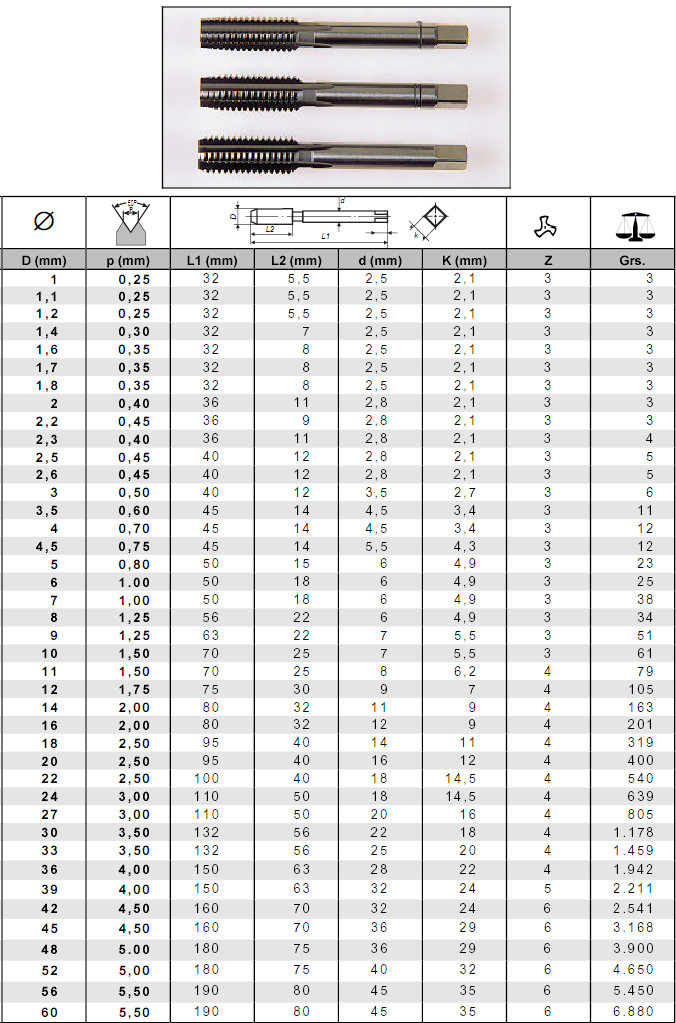 参考以下DIN标准丝锥规格