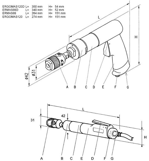 | | | 10201278.9 | 1700 | M3-M6 | 215 | 44 | 1.3 | ST19快换型 | 40 | 1/4"Gas | 8 | 750 | 75 | | | 10201279.9 | 670 | M3-M10 | 245 | 44 | 1.47 | ST19快换型 | 40 | 1/4"Gas | 8 | 750 | 75 | | | 10201257.9 | 310 | M3-M16 | 235 | 42 | 1.75 | ST19快换型 | 42 | 1/4"Gas | 8 | 700 | 78 |